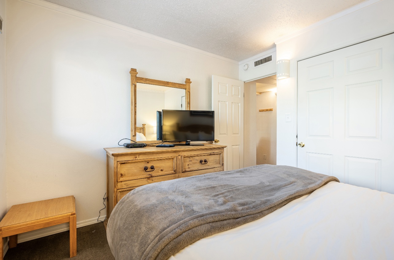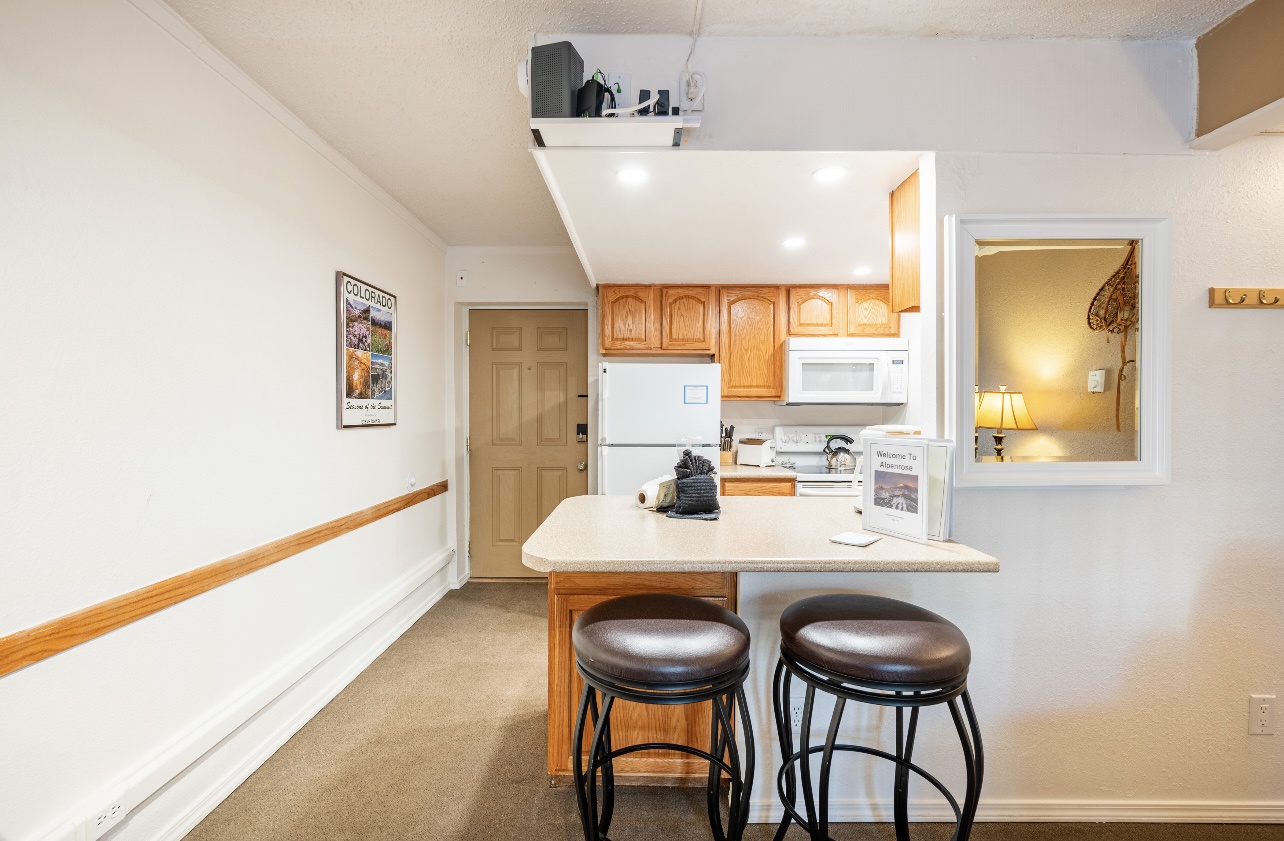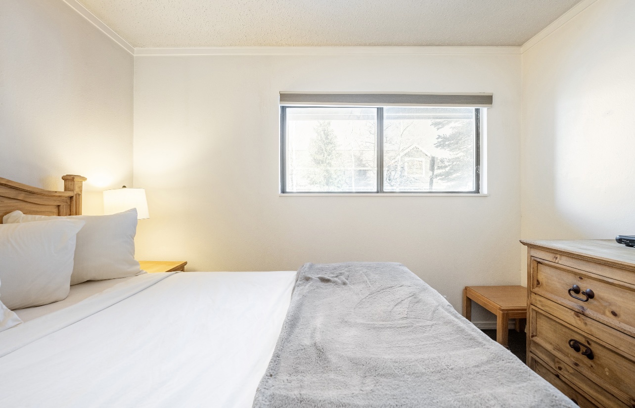 Experience the charm of Alpenrose Condos, ideally situated in the heart of Historic Breckenridge, just two blocks from bustling Main Street. This cozy retreat accommodates up to 6 guests, offering a queen bed in the master bedroom, two twins in the guest room, and a convenient sleeper sofa in the living room.