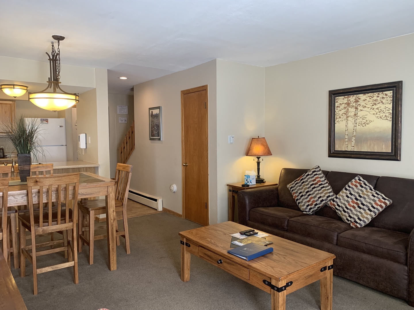 Each unit boasts modern amenities, including a washer/dryer for added convenience. Step inside to find simple, mountain-modern design and furnishings creating a cozy and inviting ambiance for your mountain getaway. French Ridge includes 24 units, most of which are two stories (3 are garden level units), providing ample space for relaxation and entertainment. The main bedroom has a queen bed with an attached bathroom, along with a second bedroom featuring twin beds and its own bathroom. Downstairs, an open floor plan; featuring a fully equipped kitchen, spacious dining area, inviting living room with a fireplace, and access to your own private deck or patio. The location and proximity to everything in Breckenridge is what makes French Ridge the best choice. One block to Main Street. On the Free Bus Route. 2 blocks to Carter Park where there are tennis courts and an Epic sledding hill.