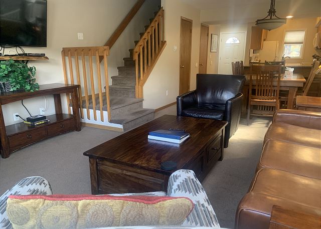 Each unit boasts modern amenities, including a washer/dryer for added convenience. Step inside to find simple, mountain-modern design and furnishings creating a cozy and inviting ambiance for your mountain getaway. French Ridge includes 24 units, most of which are two stories (3 are garden level units), providing ample space for relaxation and entertainment. The main bedroom has a queen bed with an attached bathroom, along with a second bedroom featuring twin beds and its own bathroom. Downstairs, an open floor plan; featuring a fully equipped kitchen, spacious dining area, inviting living room with a fireplace, and access to your own private deck or patio. The location and proximity to everything in Breckenridge is what makes French Ridge the best choice. One block to Main Street. On the Free Bus Route. 2 blocks to Carter Park where there are tennis courts and an Epic sledding hill. One Parking Space Provided.