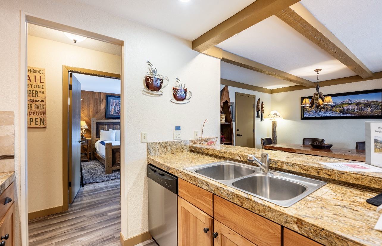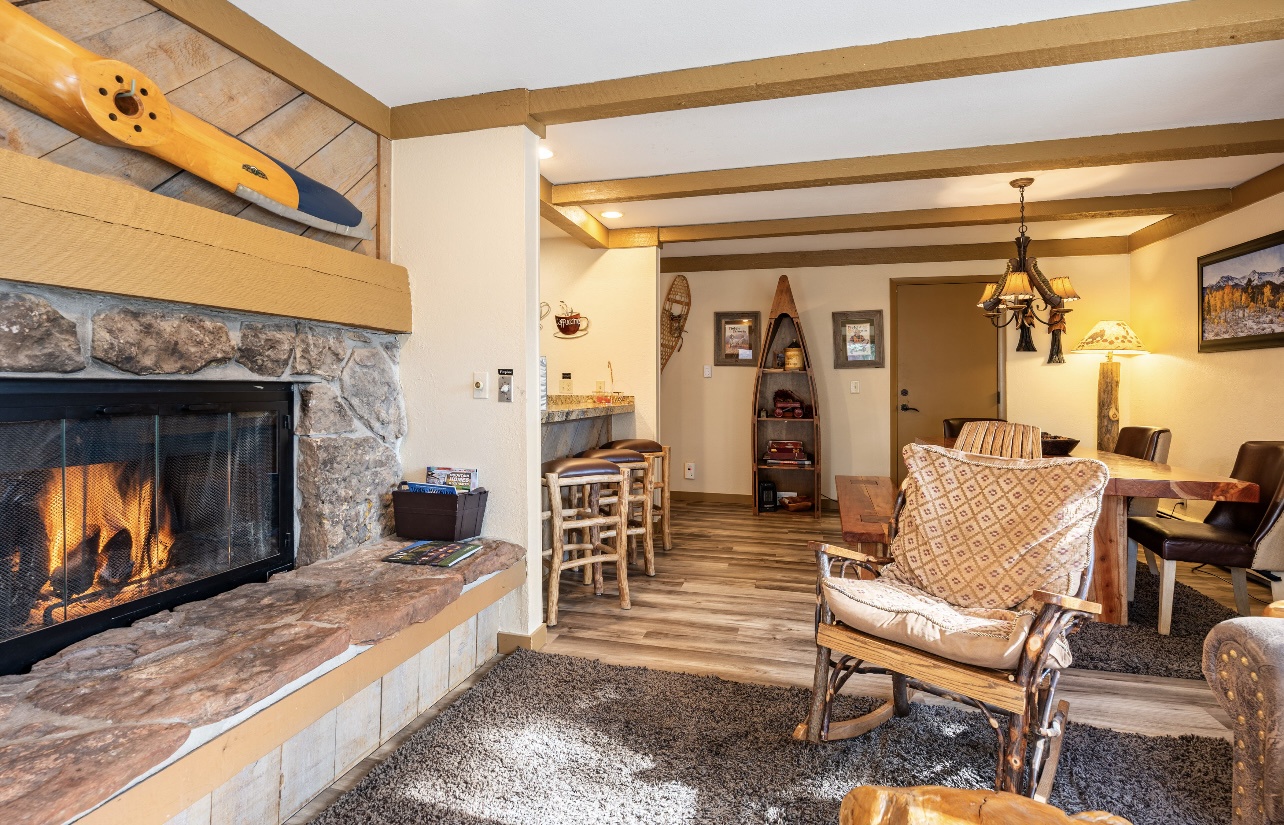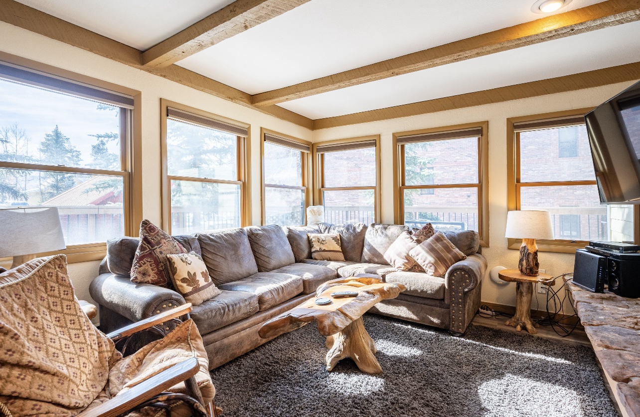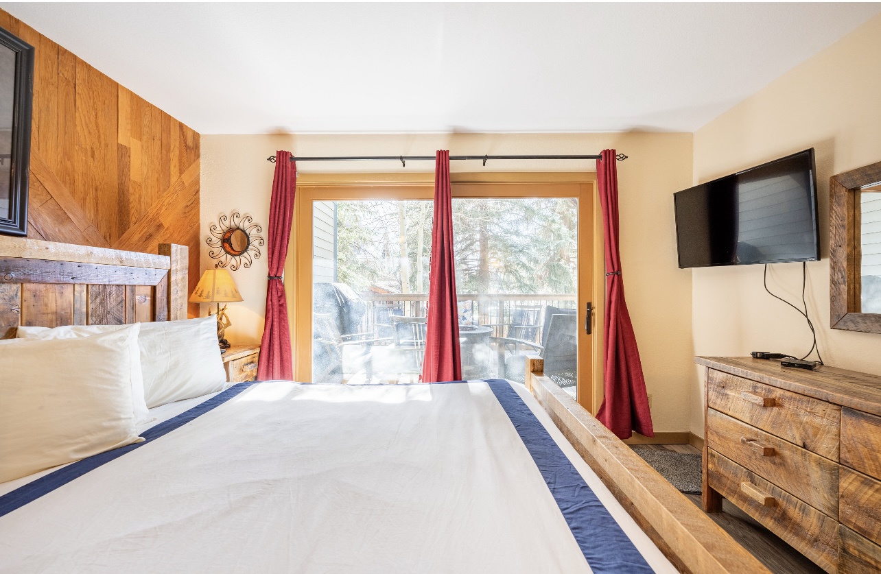Welcome to LongBranch #111, a charming condo nestled in the heart of Breckenridge's Historic District. This cozy retreat is adorned with rustic mountain decor, immersing you in the authentic Rocky Mountain atmosphere. The condo features two spacious bedrooms, each with a luxurious king bed and an attached bathroom, making it an ideal choice for families or small groups of friends. The modern kitchen boasts stainless steel appliances, elegant countertops, and all the essential cooking utensils, perfect for those who enjoy dining in. Step out onto the expansive balcony to soak up the sunshine and marvel at the breathtaking views of the Ten Mile Range. The clubhouse, open daily from 10am to 10pm, offers an indoor heated pool, large hot tub and a sauna, perfect for relaxation after a day of adventure. Parking is convenient with one designated garage space (note that oversized vehicles will not fit) and an additional outdoor parking spot, accommodating up to two vehicles. For your convenience, coin-operated washers and dryers are available on-site, located off the garage near the south side elevator. Please note, no pets are allowed. Certified service animals are welcome, and support animals can be accommodated with a letter from a doctor or therapist. Be sure to notify the front desk of any service or support animals upon arrival to avoid a $150.00 per day fee plus an extra cleaning charge for unregistered animals. Experience the best of Breckenridge with a stay at LongBranch #111, where comfort and mountain charm await.