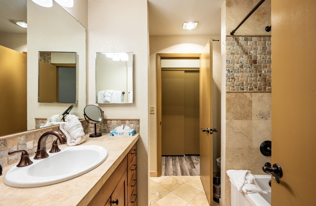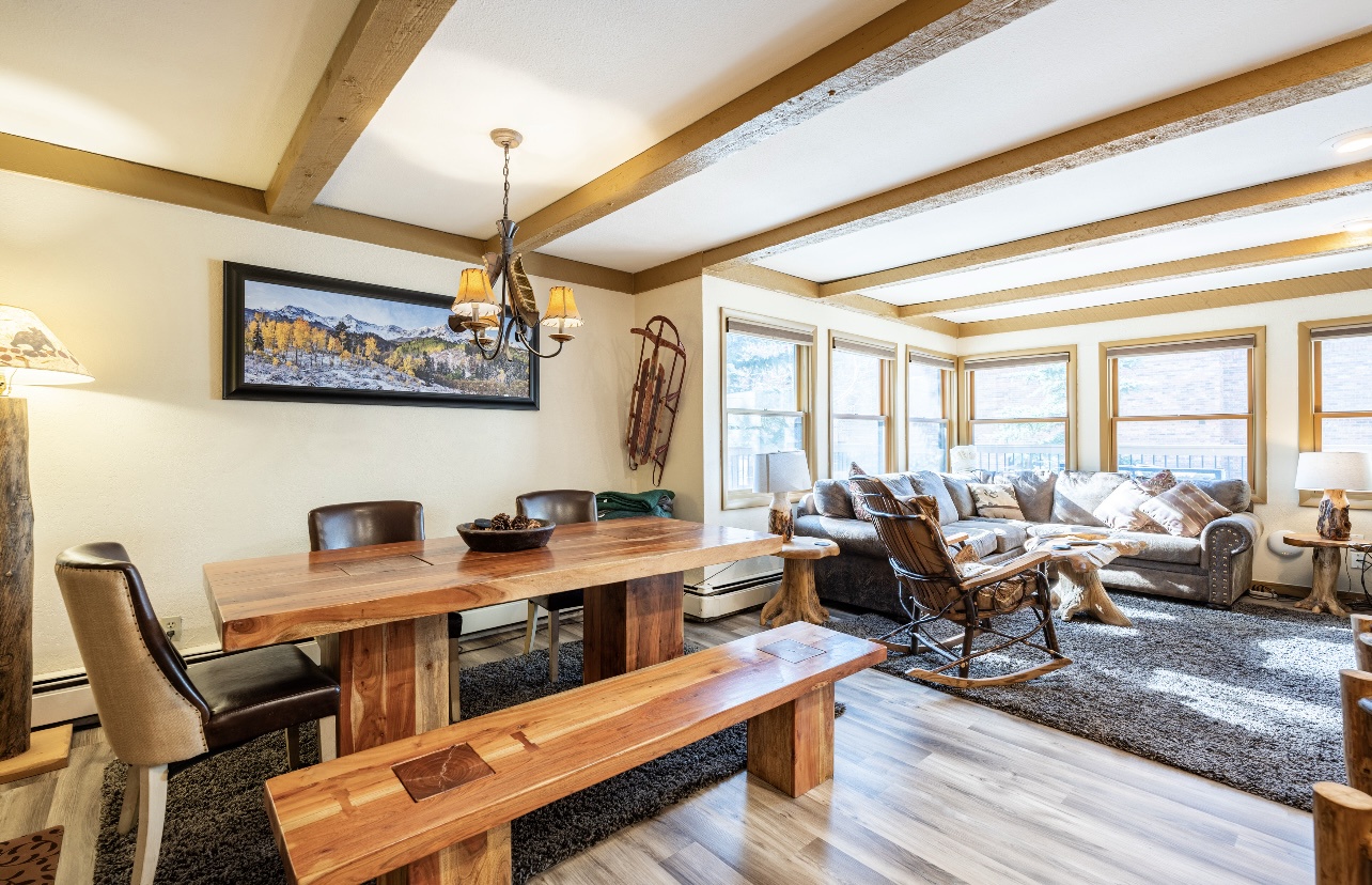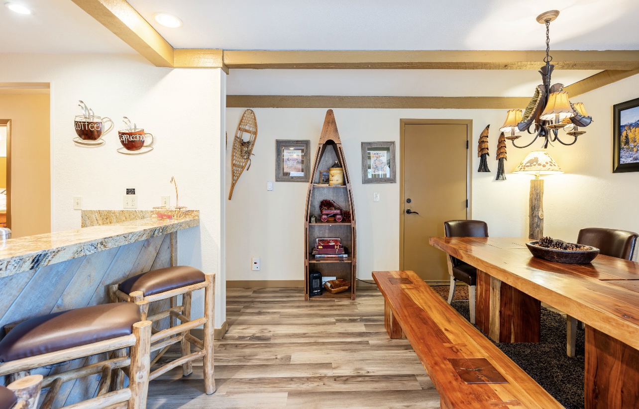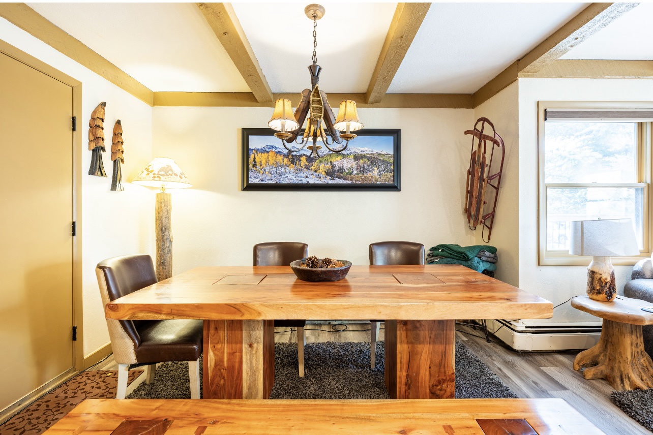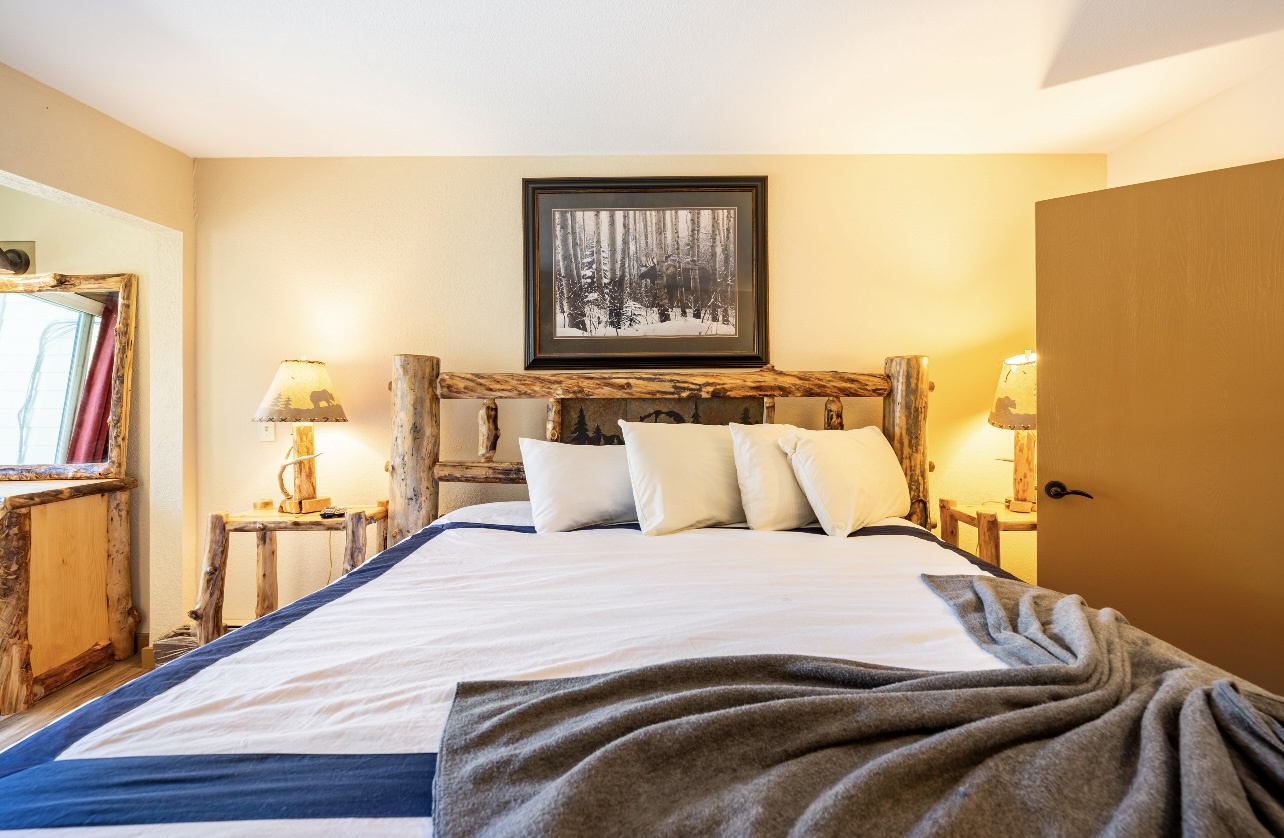 Welcome to LongBranch #111, a charming condo nestled in the heart of Breckenridge's Historic District. This cozy retreat is adorned with rustic mountain decor, immersing you in the authentic Rocky Mountain atmosphere. The condo features two spacious bedrooms, each with a luxurious king bed and an attached bathroom, making it an ideal choice for families or small groups of friends. The modern kitchen boasts stainless steel appliances, elegant countertops, and all the essential cooking utensils, perfect for those who enjoy dining in. Step out onto the expansive balcony to soak up the sunshine and marvel at the breathtaking views of the Ten Mile Range. The clubhouse, open daily from 10am to 10pm, offers an indoor heated pool, large hot tub and a sauna, perfect for relaxation after a day of adventure. Parking is convenient with one designated garage space (note that oversized vehicles will not fit) and an additional outdoor parking spot, accommodating up to two vehicles. For your convenience, coin-operated washers and dryers are available on-site, located off the garage near the south side elevator. Please note, no pets are allowed. Certified service animals are welcome, and support animals can be accommodated with a letter from a doctor or therapist. Be sure to notify the front desk of any service or support animals upon arrival to avoid a $150.00 per day fee plus an extra cleaning charge for unregistered animals. Experience the best of Breckenridge with a stay at LongBranch #111, where comfort and mountain charm await.