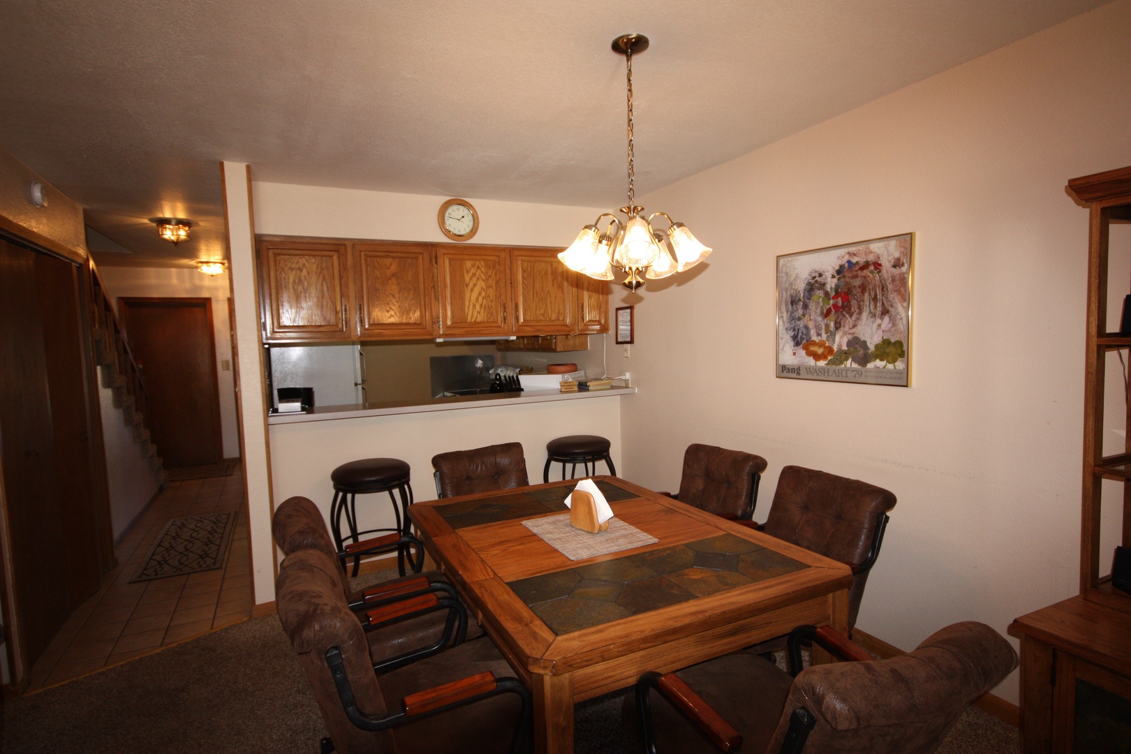 Extra Amenities: This townhome is designed with convenience in mind, featuring a one-car garage, a full-size washer and dryer, and free Wi-Fi to keep you connected throughout your stay. There is also a 1/2 bath on the main level for added convenience.