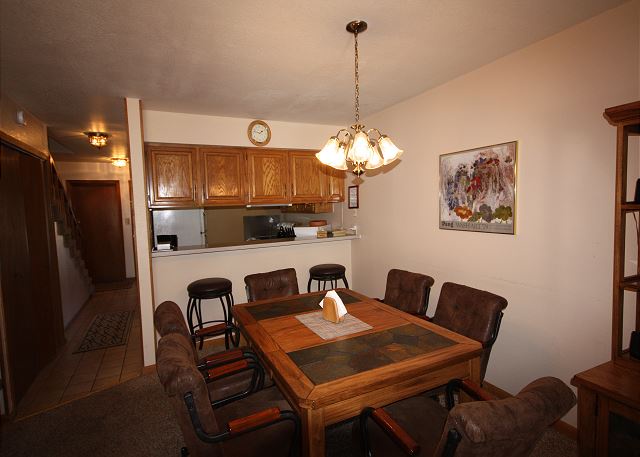 Relaxing Living Space: The open-concept living room is the perfect spot to relax after a day on the slopes or exploring town. Enjoy the warmth of the fireplace, watch your favorite shows on the flat-screen TV with cable, or gather around the dining table for a meal or game night.